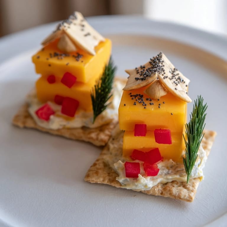 Pin It My daughter was sorting through her art supplies when she found a half-empty box of almond slivers from a baking project months ago. She held one up to the light and said, "These look like tiny roofs." That simple observation sparked an afternoon of the most delightful kitchen play—building an entire village from cheese cubes and crackers, creating something so charming it felt like we'd discovered a secret. Within minutes, we were both lost in the details, debating whether chive trees or pepper doors looked more authentic.