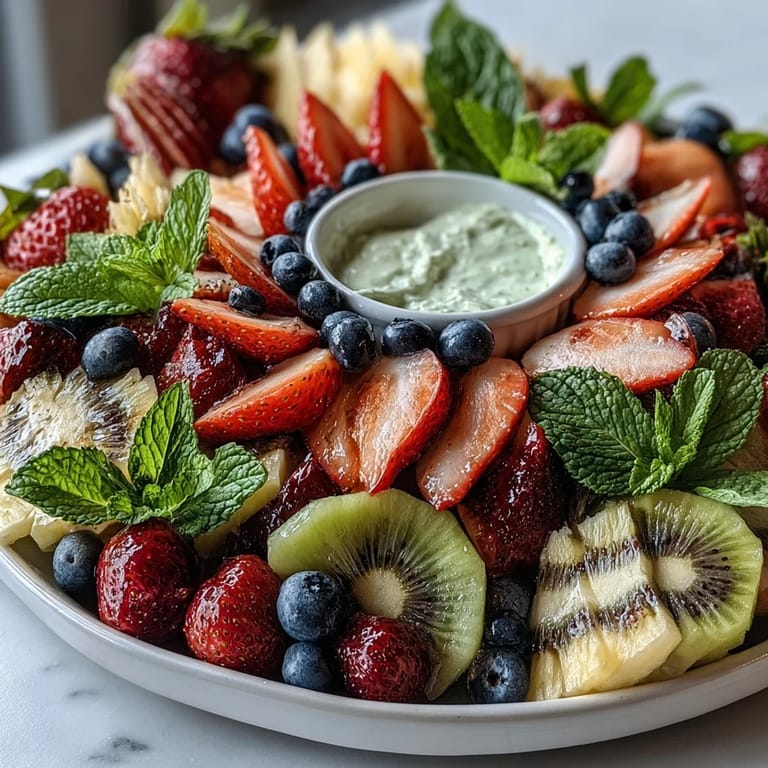 This fruit platter is endlessly adaptable. Swap in mango, papaya, or dragon fruit for a tropical twist. Use maple syrup instead of honey to make the dip vegan-friendly and suitable for babies under one year old. For a richer dip, fold in a tablespoon of cream cheese or mascarpone. If you're serving this at a more formal event, consider adding a drizzle of balsamic reduction over the berries for an elegant touch. You can also create themed platters by choosing fruits in specific color palettes—pastels for baby showers, reds and greens for holidays, or bright rainbow hues for summer celebrations.