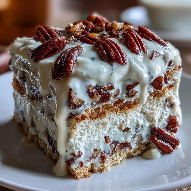 Pin It The first forkful caught me off guard at a potluck where someone brought what looked like an ordinary sheet cake. One bite and I understood why people hovered around that dessert table. The milk-soaked crumb practically dissolved on my tongue while candied pecans added a satisfying crunch I hadn't expected. I asked for the recipe on the spot and have been tinkering with it ever since.