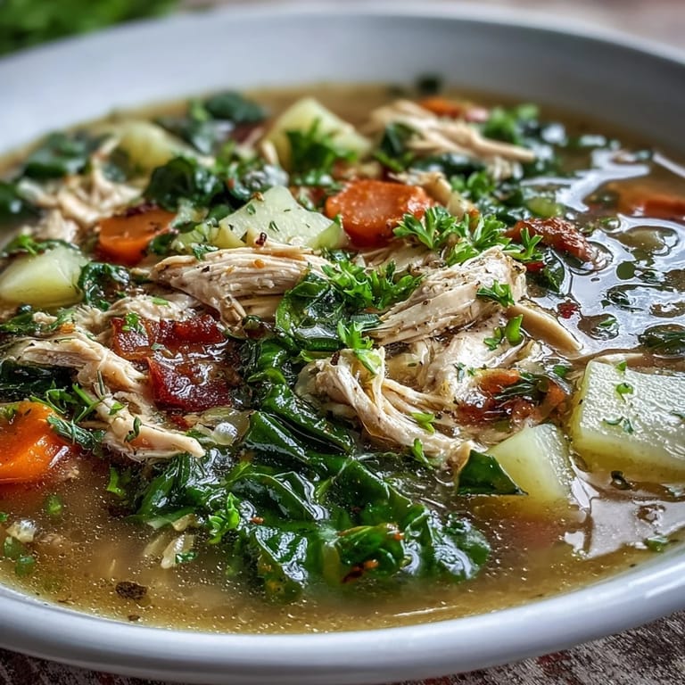 Pin It There's something about a pot of soup simmering on the stove that makes a kitchen feel like home. My neighbor stopped by one cold afternoon, and I had this collard greens and chicken soup going, and she just stood in the doorway breathing in, asking what smelled so good. The combination of tender chicken, creamy potatoes, and those earthy greens turned out to be exactly what we both needed that day.