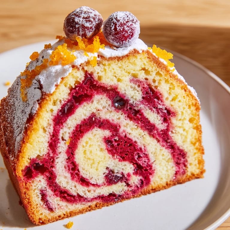 Pin It I discovered this cake during a particularly quiet December afternoon when my kitchen felt too empty without the chaos of holiday baking. I had fresh cranberries sitting in a bowl, a bag of oranges catching the winter light, and suddenly I was transported back to my grandmother's kitchen where she'd make something similar every year. The memory was so vivid that I decided to recreate it that very day, and what emerged was this stunning swirl cake that tastes like Christmas morning feels.