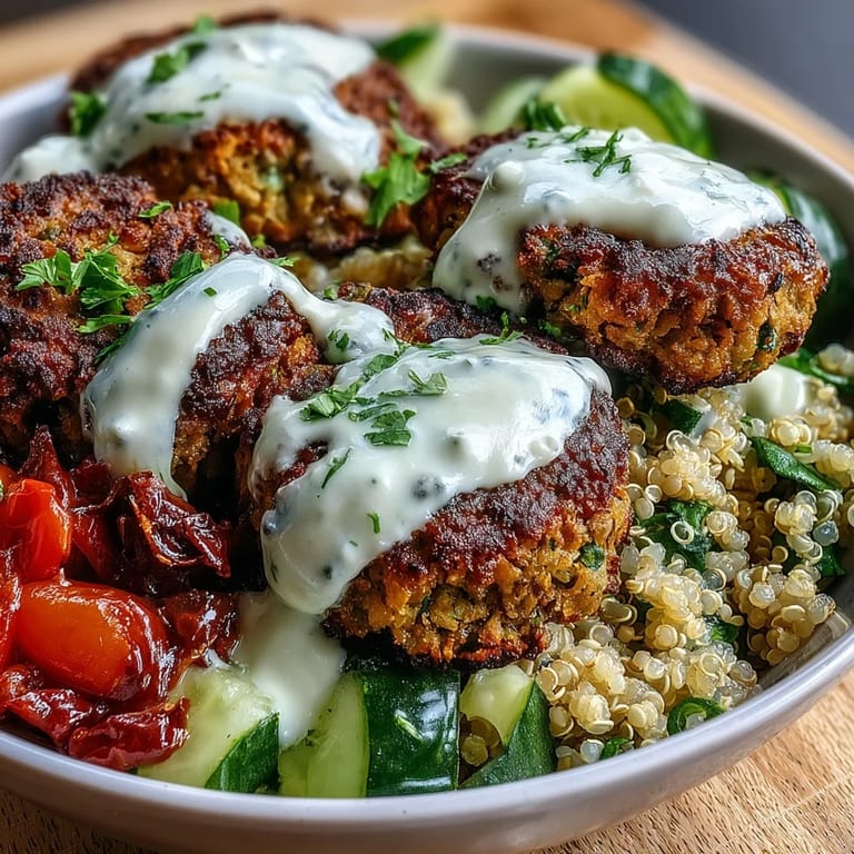 On nights when I'm genuinely hungry, I'll serve this with warm pita bread and maybe some hummus on the side, turning it into something almost pizza-like in its satisfaction. Other times, when I just want something nourishing but light, I'll pile extra greens under the quinoa or add raw spinach that wilts slightly from the warm falafel and sauce. The beauty is that you can scale the richness up or down depending on what your body needs that day.