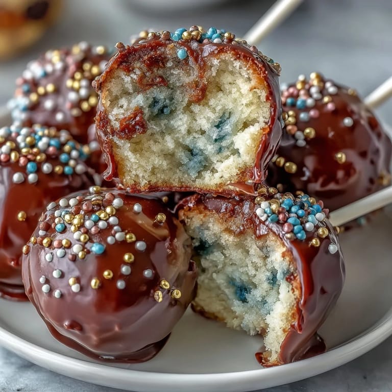 Pin It Celebrate your graduate's big achievement with these delightful cake pops crafted in your school's colors and sprinkled with shimmering gold accents. These festive treats combine the rich flavors of homemade cake with the fun and elegance of a hand-dipped confection, perfect for any graduation party or ceremony dessert table.