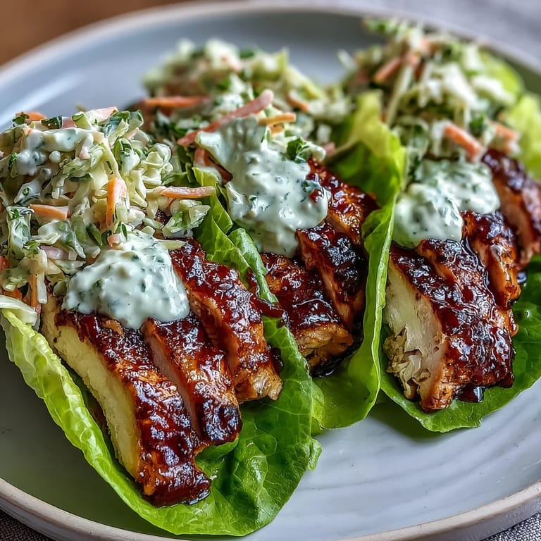 Pin It Imagine the satisfaction of biting into a tender, smoky BBQ chicken wrap that's not only bursting with flavor but also supporting your health goals. These High-Protein BBQ Chicken Lettuce Wraps bring together juicy, perfectly seasoned chicken and crisp, tangy slaw wrapped in fresh lettuce leaves for a meal that satisfies without weighing you down. Perfect for busy weeknights or meal prep, this protein-packed dish delivers the comfort of BBQ in a nutritious package.