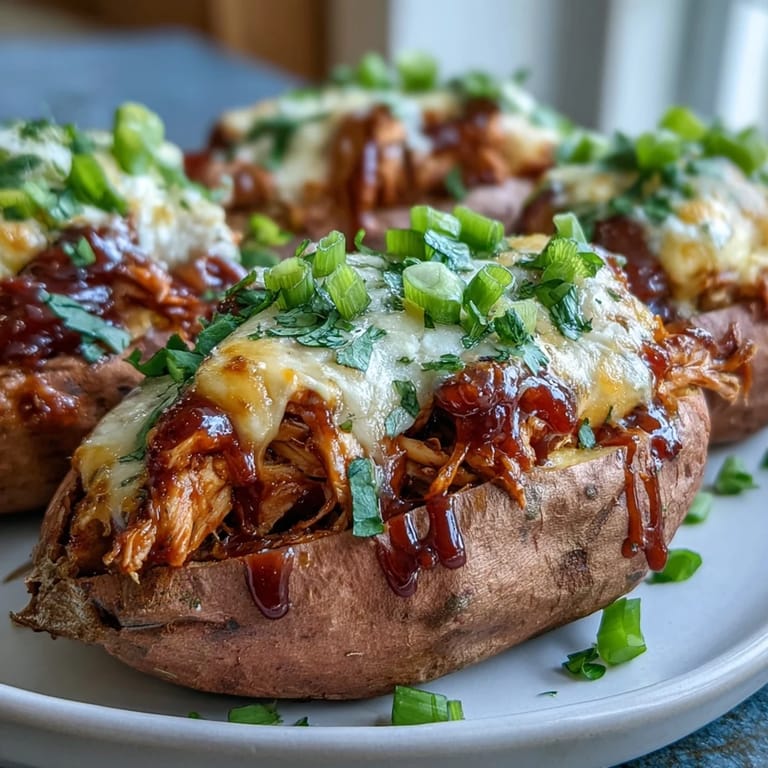 Pin It There's something about the smell of sweet potatoes caramelizing in the oven that makes me pause whatever I'm doing and just breathe it in. One Tuesday evening, I was tired from work and staring blankly at my fridge when I spotted leftover shredded chicken and a bottle of honey BBQ sauce, and suddenly this dish came together in my head. It felt like the kind of meal that could make anyone feel better—hearty but not heavy, impressive but genuinely simple to pull together.