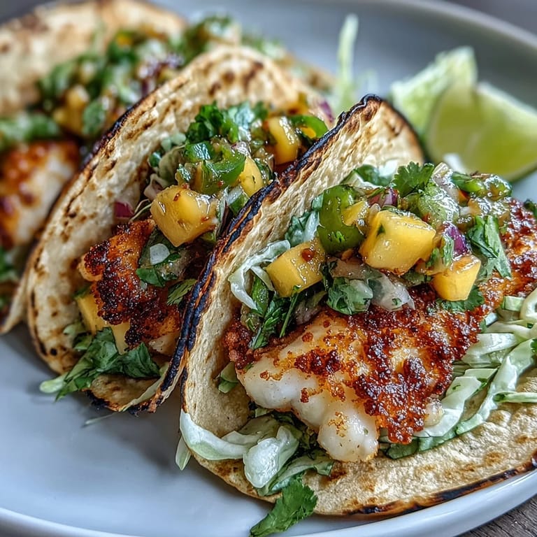 Pin It Imagine the gentle sizzle as lightly spiced tilapia fillets hit a hot pan, their edges crisping to golden perfection. In just thirty minutes, you'll transform simple ingredients into a vibrant meal that brings together smoky-sweet fish and juicy mango salsa, all wrapped in soft corn tortillas. These Light Mango Salsa Tilapia Tacos offer the perfect balance of flavors - the mild, flaky fish provides an ideal canvas for the bold spice blend, while the fresh mango salsa adds bright, tropical notes that elevate this dish from everyday to extraordinary.