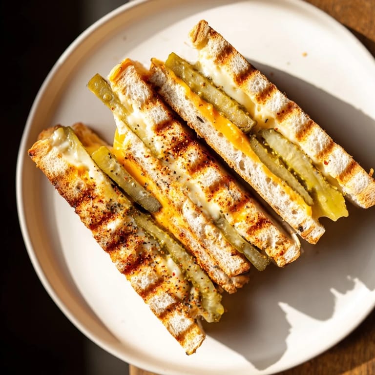 Pin It A crave-worthy twist on classic grilled cheese: tangy pickles and spicy jalapeños layered with gooey cheese, grilled to golden perfection and cut into dippable strips perfect for snacking or sharing.