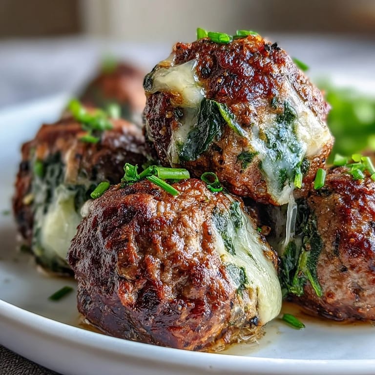 Pin It The first time I made these spinach garlic meatballs, my kitchen smelled like an Italian grandmother had moved in. My husband walked through the door actually stopped mid sentence and asked what kind of magic was happening on the stove. Those little pockets of mozzarella inside were a total game changer that I discovered by accident one Tuesday night.